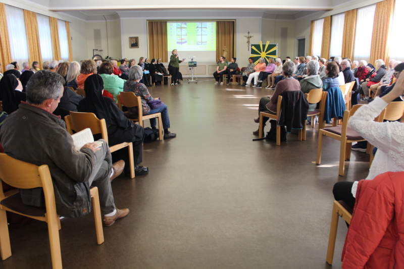 Der Sonnengesang spiegelt wider wie Franziskus in Einklang lebte mit der Natur, mit allen Geschöpfen, mit sich und Gott. Diese Dichtung ist auch Auftrag an uns, diesen Einklang zu suchen. Wie sie uns inspirieren kann, bewusster zu leben in Wertschätzung und Achtsamkeit den Geschöpfen und der Schöpfung gegenüber, darüber machte man sich in regem Austausch in Kleingruppen Gedanken. Unter den gefundenen Anregungen, die im Plenum gesammelt wurden, war sicher für jeden etwas dabei.