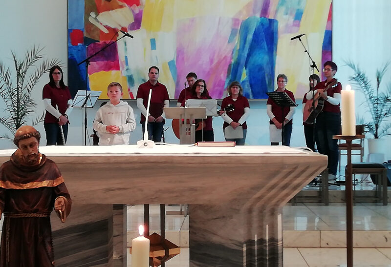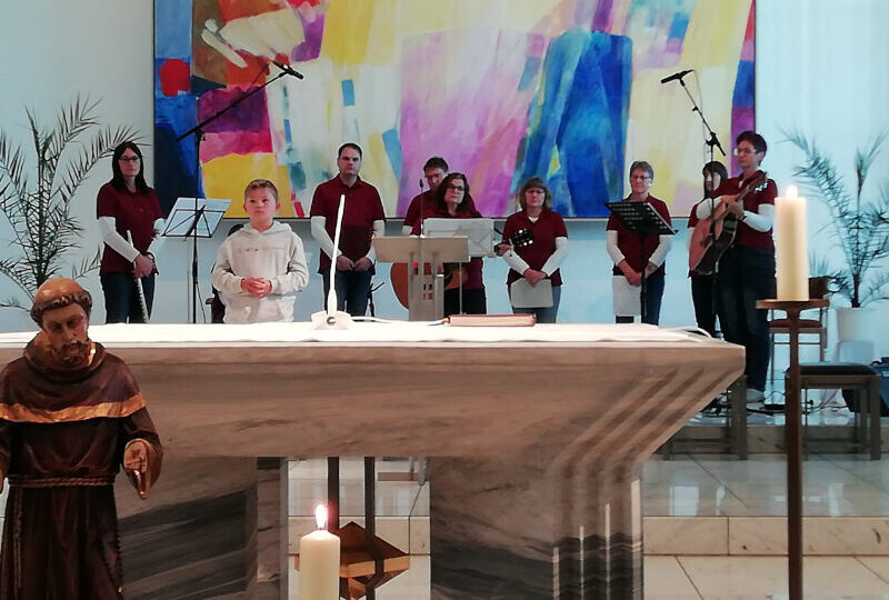 „Höchster, allmächtiger, guter Herr …“, der Sonnengesang des hl. Franziskus, der seit 800 Jahren Menschen begeistert und über all die Jahrhunderte hindurch gebetet und gesungen wurde, stand im Mittelpunkt des diesjährigen Franziskusfest. Von allen Seiten hatten sich Gäste auf den Weg gemacht, um unserer Einladung zu folgen und mit uns zu feiern. Zum Auftakt um 10:00 Uhr hatte sich ein bunt gemischtes Publikum aus Alt und Jung eingefunden. Sr. M. Natale hieß alle herzlich willkommen und wünschte einen Tag voller Freude, guter Gespräche und regen Austausch‘. Mit allen Sinnen sollte das Jubiläum „800 Jahre Sonnengesang“ gefeiert werden. Ein Impulsreferat von Fr. Ariane Roidl beleuchtete den geschichtlichen Hintergrund und die Lebenssituation in der Franziskus den Hymnus dichtete. Klangschalenmeditationen ließen die vorgetragenen Strophen des Sonnengesangs auf neue Art und Weise lebendig werden.